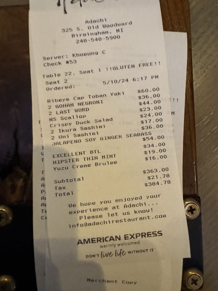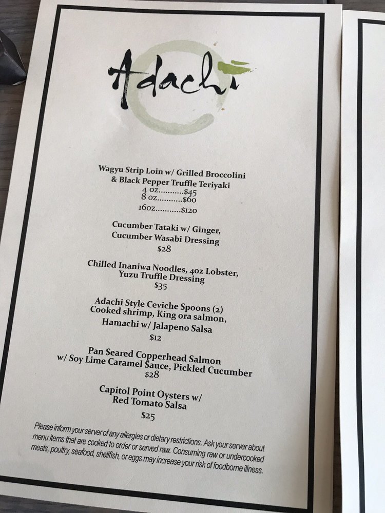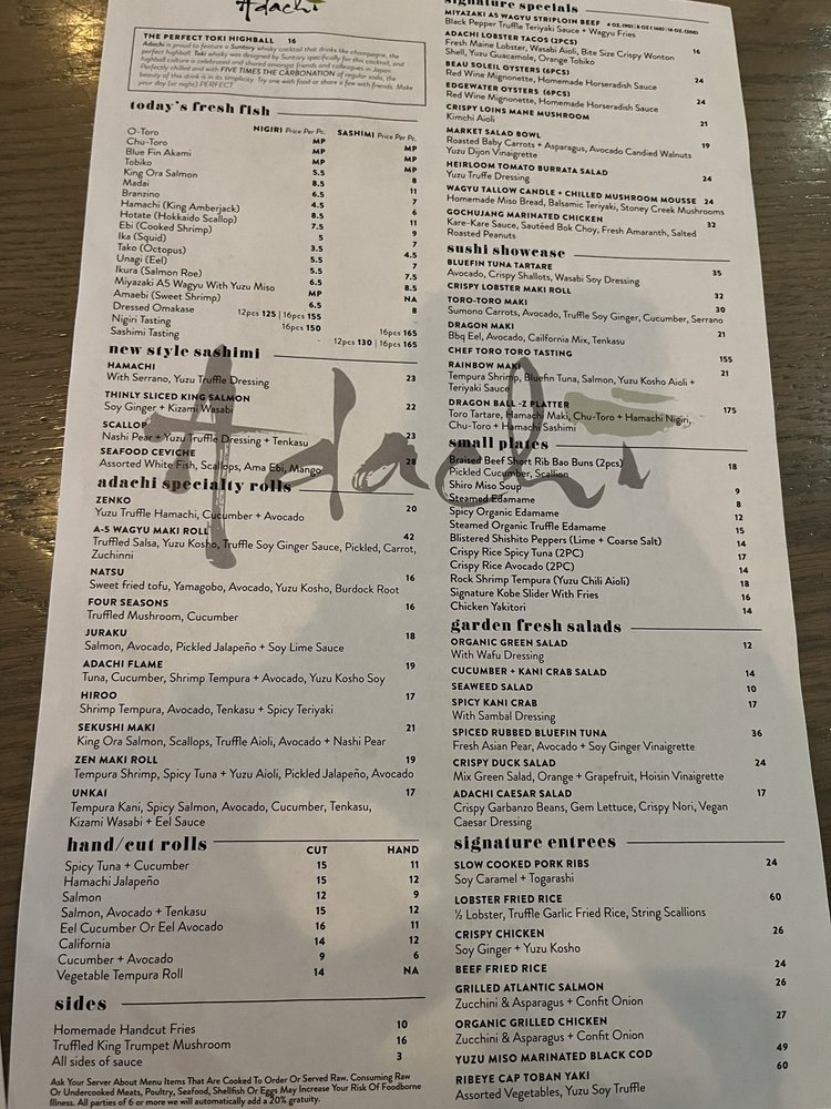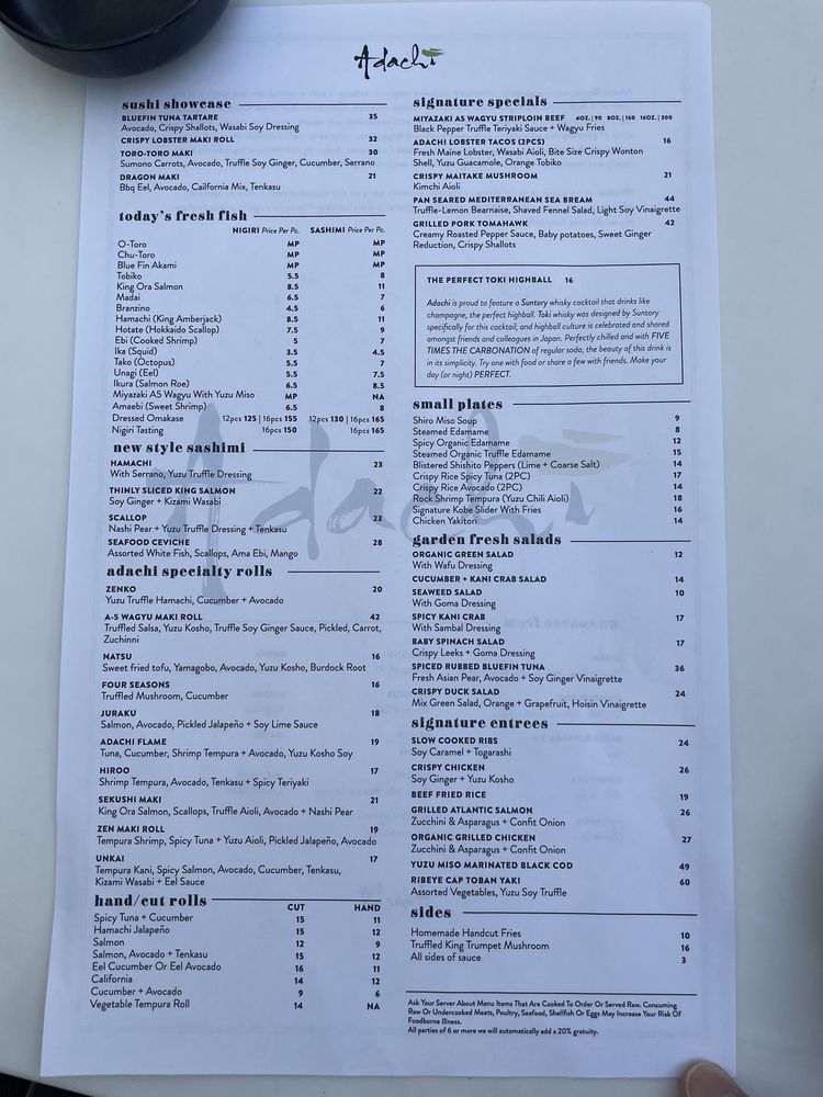 Adachi Sushi & Japanese Cuisine in Birmingham, MI offers a diverse menu with vegan and vegetarian options, outdoor seating, and a classy, upscale ambiance. Customers rave about the fresh fish, exceptional service, and flavorful dishes like the new style scallops, hamachi jalapeno, and juraku roll. The restaurant's unique atmosphere, attentive staff, and delicious maki rolls make it a must-visit spot. The menu features creative and unique plates, with knowledgeable waitstaff ready to guide diners through their dining experience. Despite minor issues, the gracious service and exceptional desserts like the butter cake leave a lasting impression. Overall, Adachi Sushi & Japanese Cuisine provides a top-notch dining experience for both sushi enthusiasts and those looking for a taste of Japanese cuisine in Michigan.
